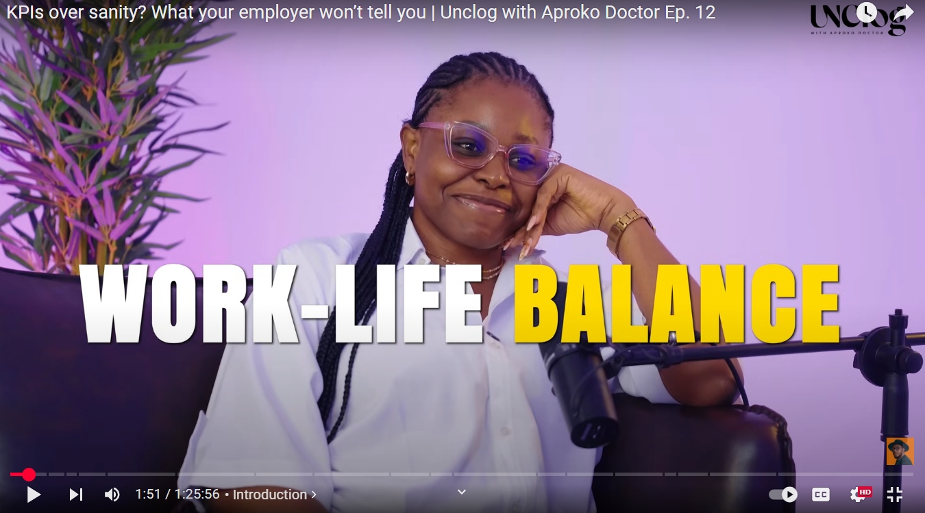 Unclog with Aproko Doctor Podcast on Mental Health in the Workplace.